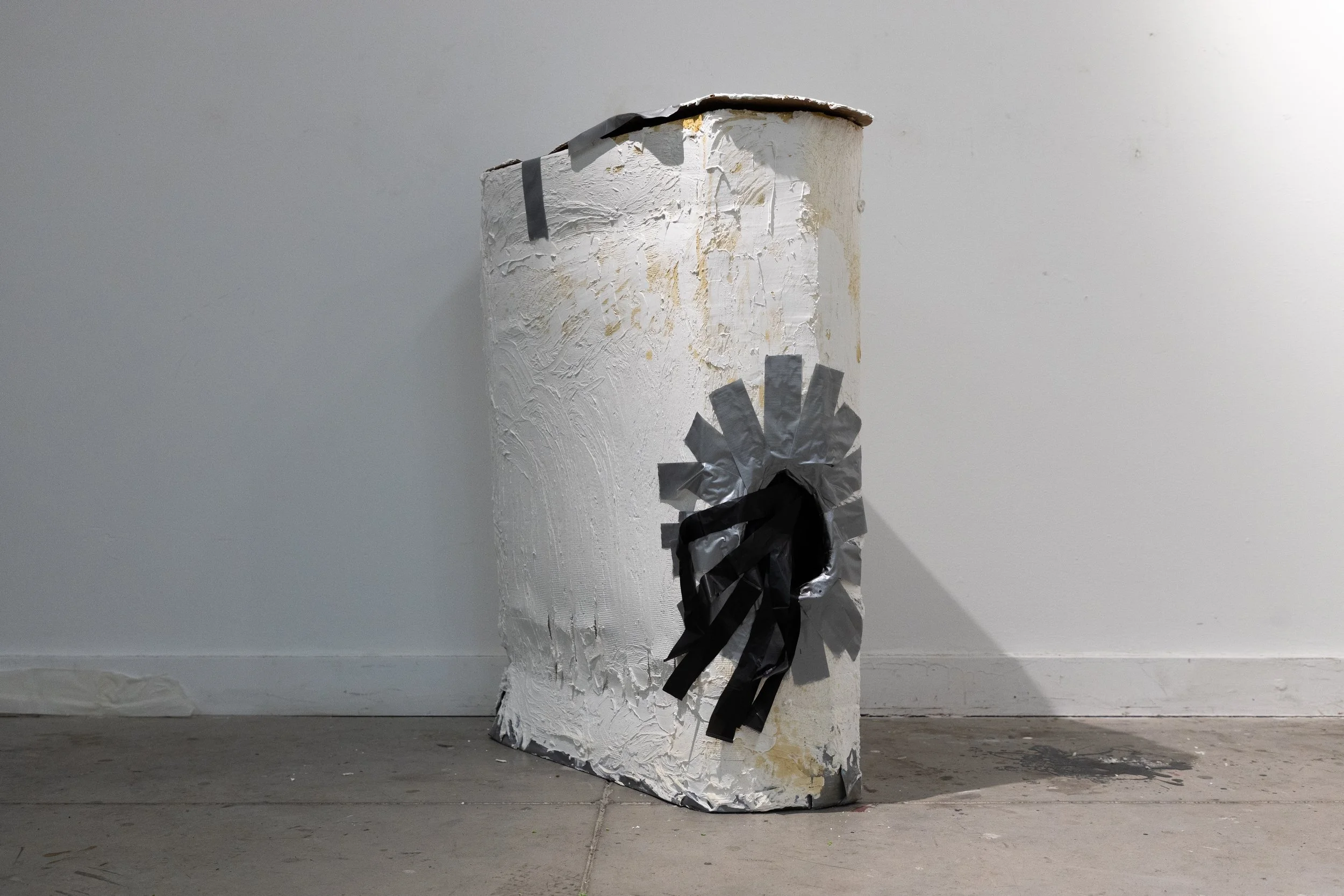 Floor Work, 2025. Porcelain. Tools of Artificial Sexual Dimorphism 2025. Miscellaneous objects. "Money is power. Sex is power. Therefore, getting money for sex is simply an exchange of power" 2025. Bar stools, Seamen, Sweat, and Liquor. Repugnant, 2025. Mustache, Lipstick, and Wax Strips. Sex Appeal, 2025. Human Hair from a Woman? Fuck Trump (Begin Negotiations), 2025. Bar Napkin and Ink. Get On Your Knees, 2025. Duct Tape, Rope, Silicone, and Miscellaneous Material.